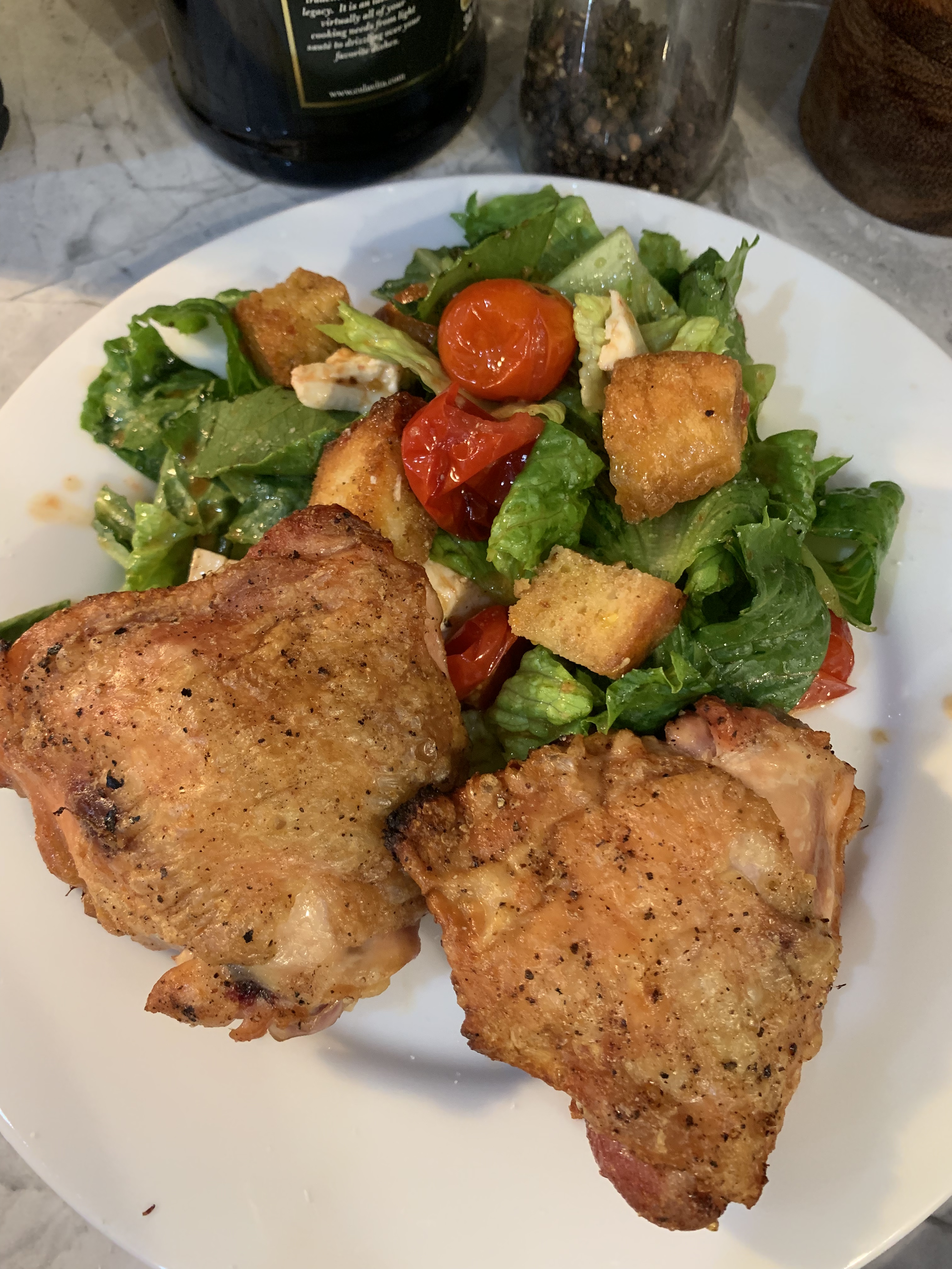 - Rub the chicken with 1 teaspoon of olive oil and season all over with salt and pepper.