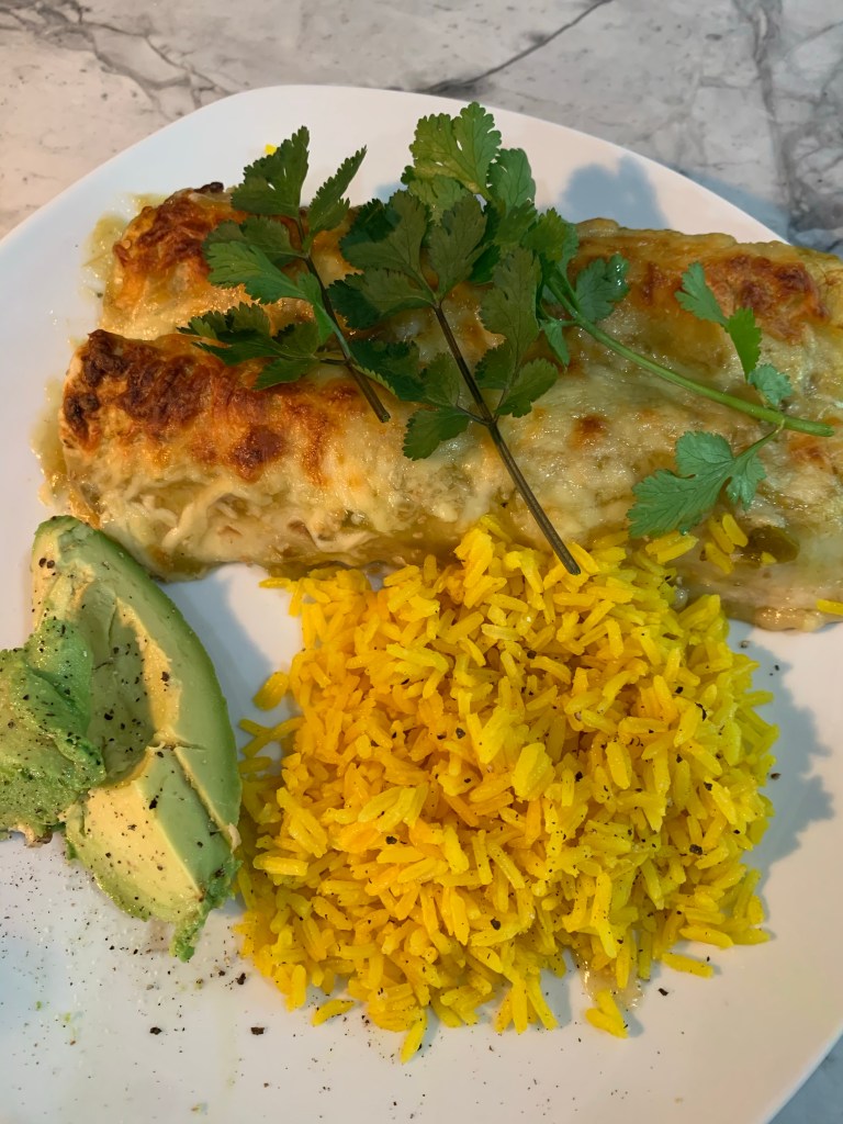 - Let cool for 10 minutes and then serve with rice, avocado and cilantro.